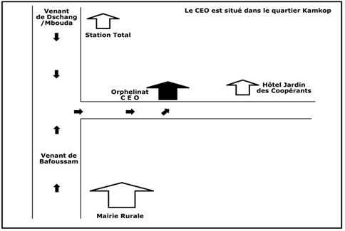 Le CEO est situé dans le quartier Kamkop, sur la route Bafoussam - Mbouda entre la Mairie rurale, l'école Annexe et la Station Total, dans la rue qui mène à l'Hôtel "Jardin des Coopérants".